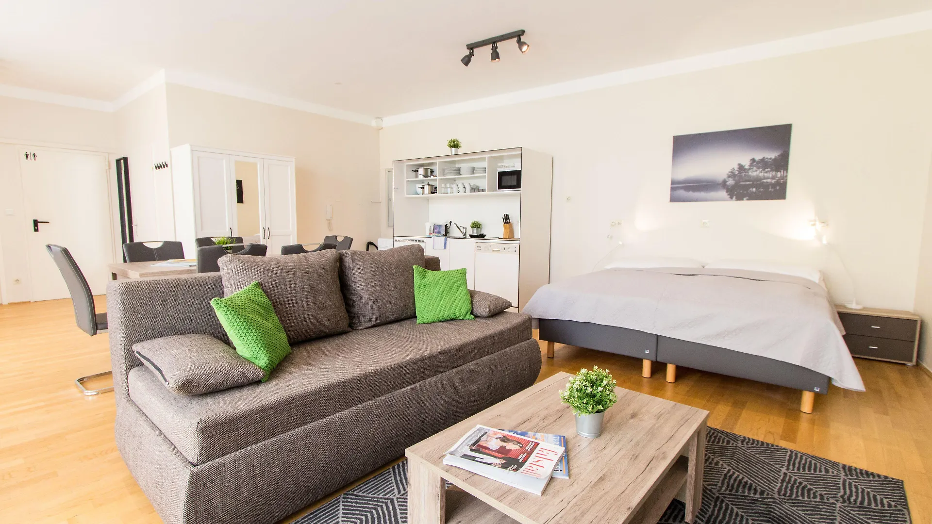 Kuchyňské vybavení zahrnuje mikrovlnnou troubu a toustovač.Je to 15 minut chůze od stanice metra Rathaus.